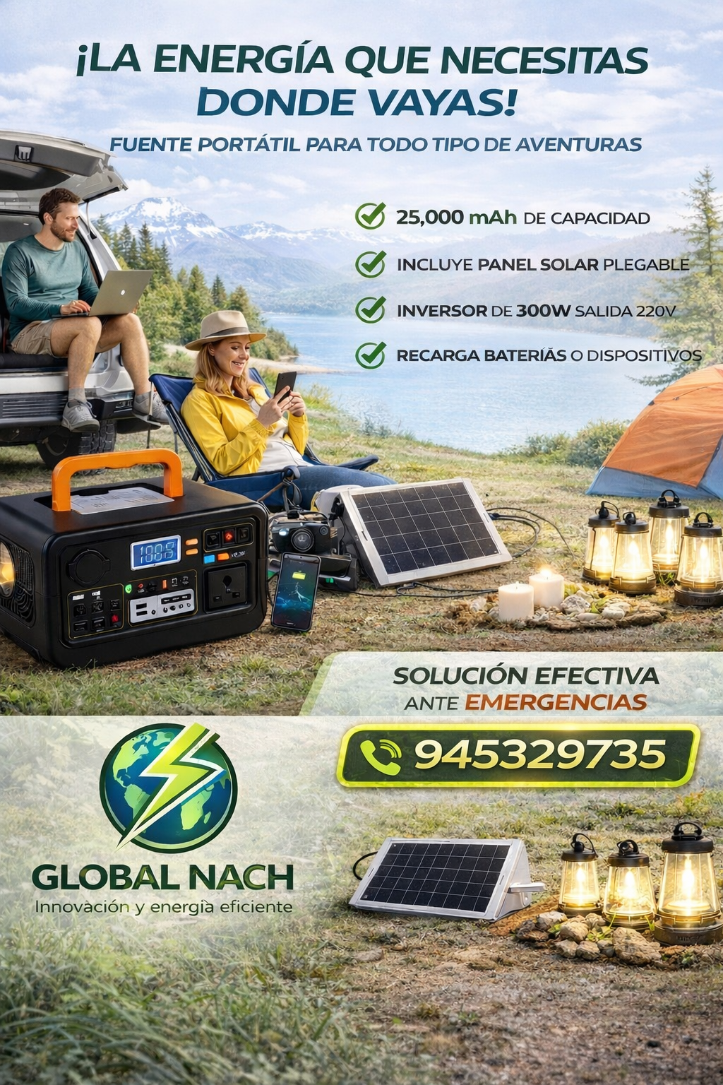 Este generador solar portátil elimina la ansiedad y frustración de los cortes de luz constantes. Las familias ya no tendrán que sufrir noches a oscuras, comida descompuesta en el refrigerador o estar desconectados del mundo durante apagones. Es la tranquilidad de saber que siempre tendrás energía cuando más la necesitas.