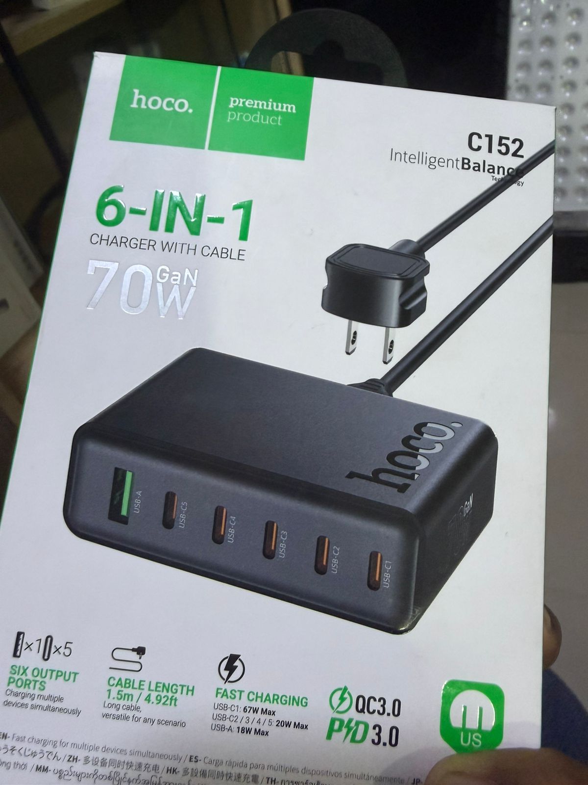 7 puertos (6 USB-C, 1 USB-A)