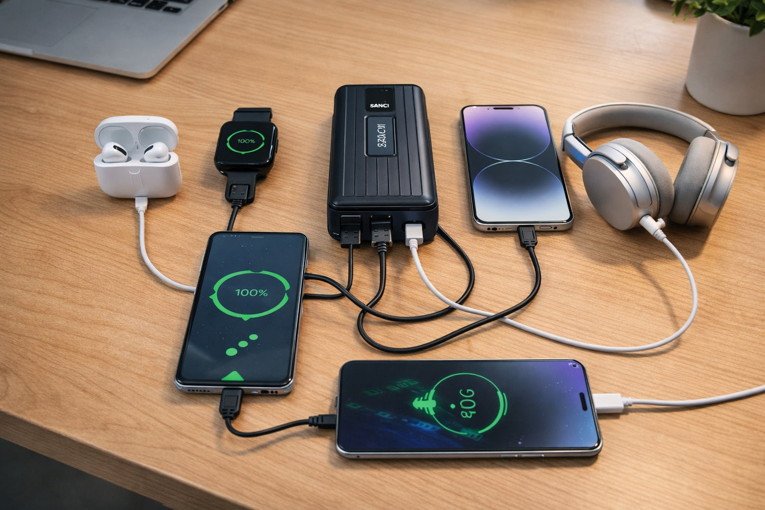 Carga simultáneamente laptop, teléfono, auriculares, smartwatch y tablet sin hacer cola por un enchufe